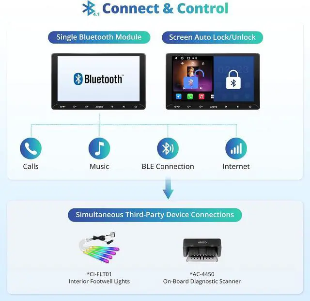 Versatile Connectivity & Internet Access: Bluetooth 4.1 handles calls, internet, music, BLE connection and screen auto-unlock. Connect devices like OBD2 tools without affecting calls or music. Access internet via WiFi hotspot or Bluetooth tethering