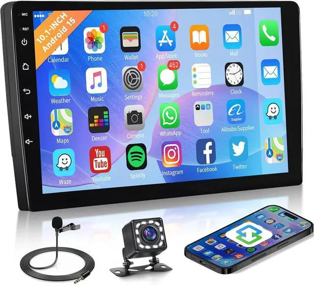 Plug-and-Play Compatibility: Supports steering wheel controls for hands-free operation and reverse camera input (backup cam not included). Universal double din size fits 99% of vehicles (for Toyota, Ford, Honda, etc. ).