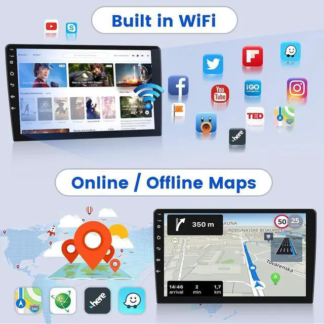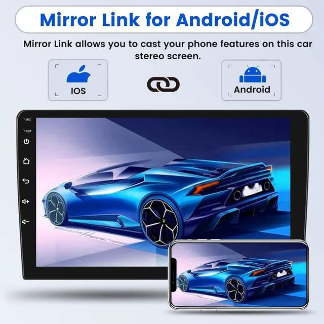 Mirror Link with Voice Control & Spilt Screen: Support mirror link for iOS and Android phones, to realize phone screen casting to the car screen to access maps, videos, apps, etc. It also features voice control, making it easier to free your hands for safer driving operations. And you can switch apps and run two apps on-screen side by side. So go ahead listening to music on Spotify while navigating, or making a phone call with your browser open.
