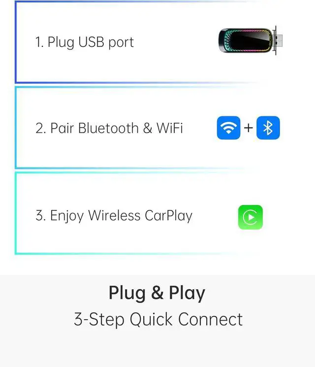 Universal CompatibilityThis Apple CarPlay wireless adapter is compatible with more than 800+ car models, support for iPhone 6 and later iPhone models.