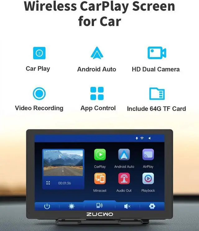 GPS Navigation The 9-inch portable Iphone CarPlay screen features accurate real-time GPS navigation using Google Maps or Waze, ensuring a smooth and stress-free trip.
