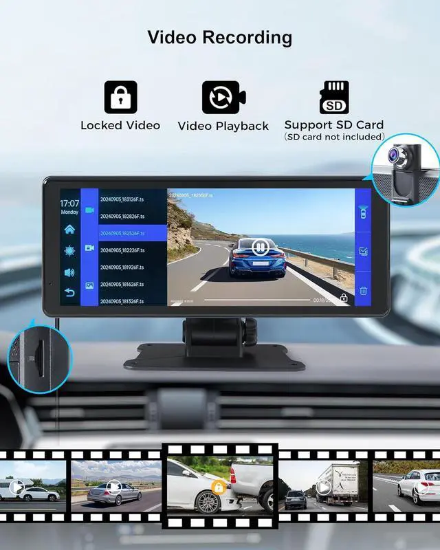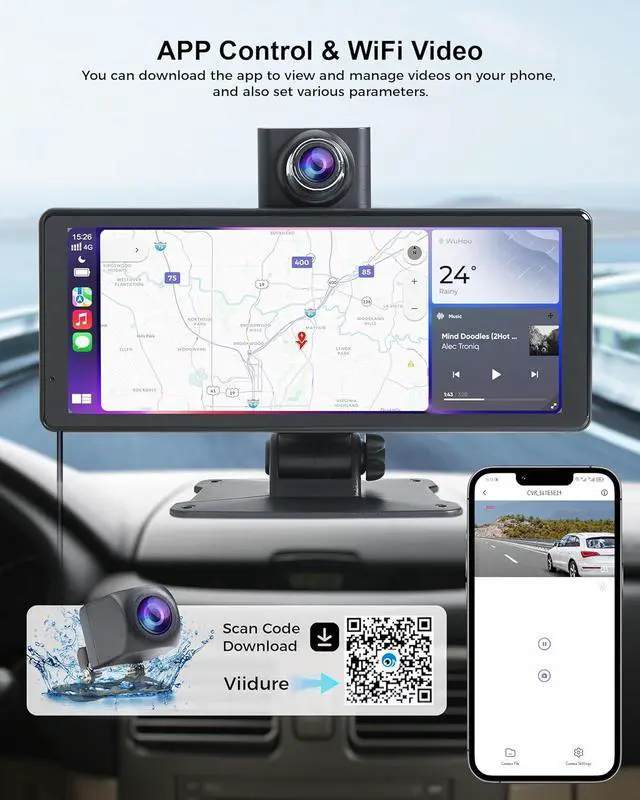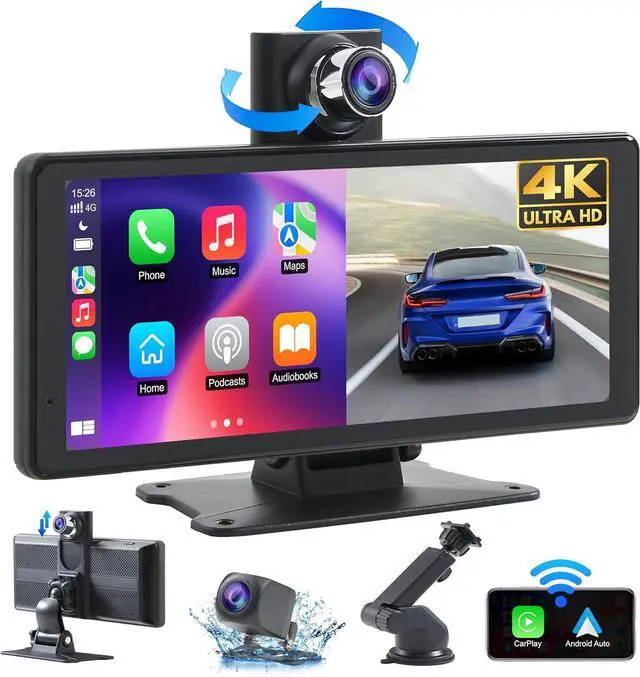 Rear Dual Recording System: Equipped with a 4K dash cam and a 1080P backup camera, the CarPlay with backup camera captures every detail clearly. With night vision and DVR recording capabilities, you can drive with peace of mind knowing that every moment is documented.