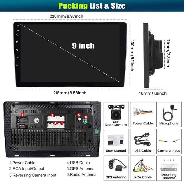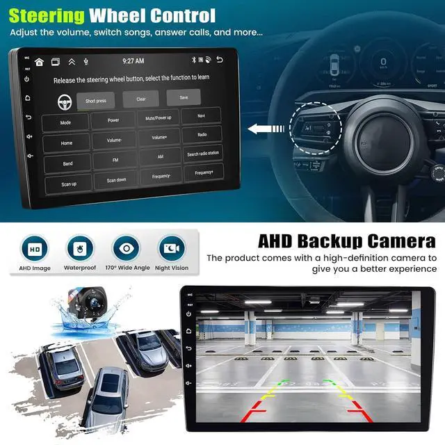 Steering Wheel Control &AHD Rear View Camera: The car radio supports the car steering wheel to remote control the radio panel, including switching songs, switching channels, adjusting volume, answering calls, etc., you can easily complete the operation while driving. Equipped with an AHD rear view camera with a waterproof design, Excellent night vision and 170° ultra-wide field of view. When reversing, the AHD camera reversing image will be automatically displayed on the touch screen.