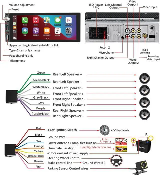 Single DIN, Smarter Drive Upgrade your dash with CarPlay, Android Auto, fast charging, and a backup cameraall in one unit