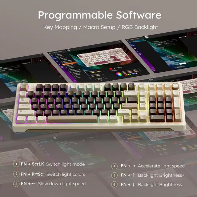 RGB Keyboard & Software Support With south-facing LEDs and 15 RGB light modes, this blutooth ergonomic keyboard offers vibrant lighting effects. You can easily adjust RGB settings, customize key mapping and macros using s software on the Windows system