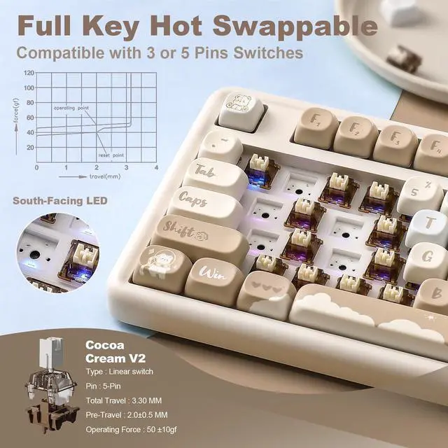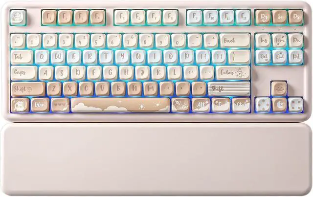 MORE FEATURES Cute MOA KeycapsEquipped with super cute bear-patterned MOA keycaps, it adds more fun to the mechanical keyboard