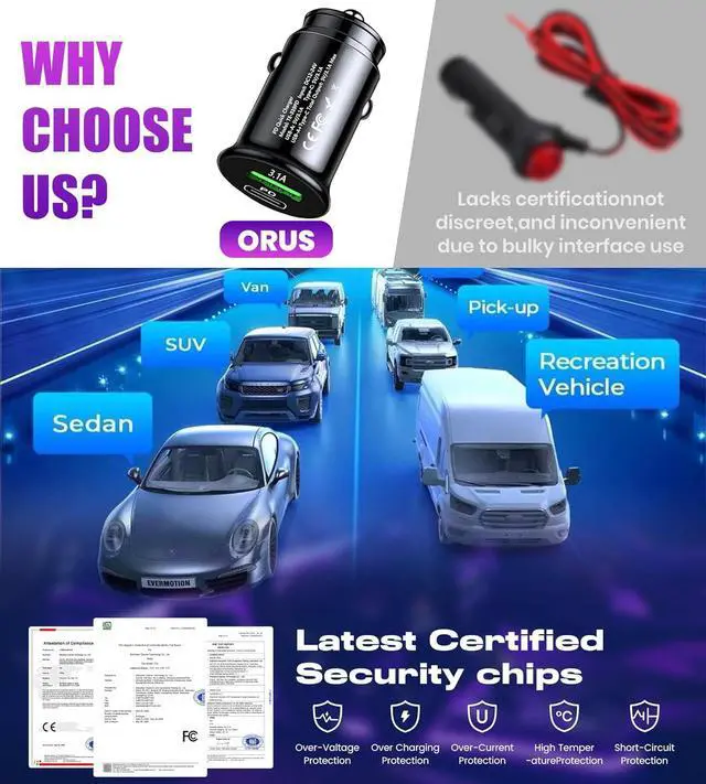 USB + Type-C Dual-Port Cigarette Lighter Adapter Equipped with a premium cigarette lighter adapter featuring one USB-A and one Type-C output, it powers the light kit while also supporting fast charging for your phone or other devicesno extra car charger needed.