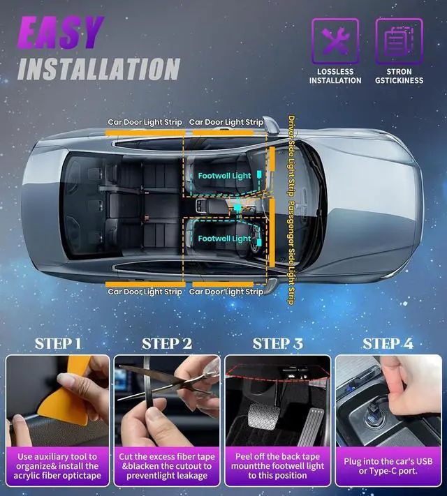 Extra Cable Length & Universal Fit Extended wiring and included mounting kits make installation easy in most vehiclessedans, SUVs, trucks, MPVsacross dashboards, door panels, foot areas, and more.