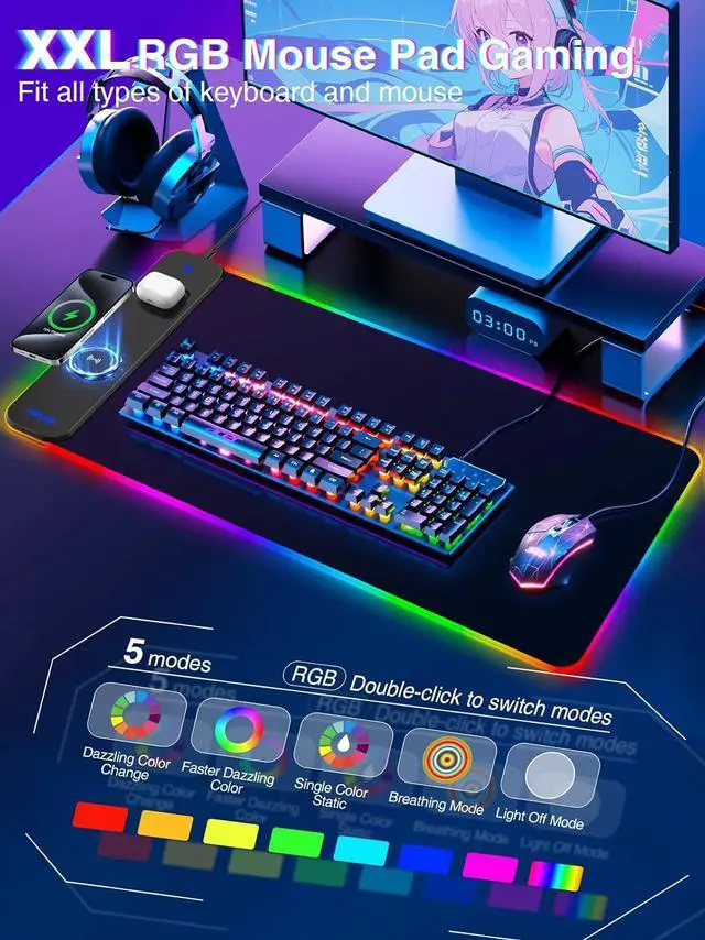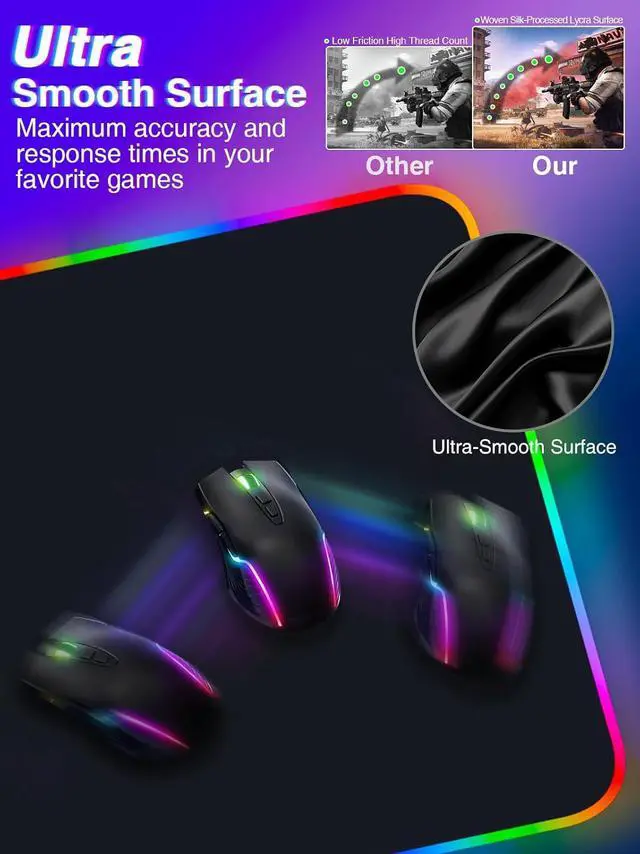 Secure Non-Slip BaseThe high-density rubber base prevents shifting during intense gameplay. The thick 4mm profile adds comfort for wrist support and stability on any desk.