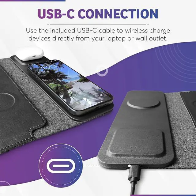[Charging Output & Input] Input - USB-C DC 12V/ 2.5A. Output - smartphones 15W max. Output earbuds 5W max. Use the included USB-C to USB-C cable to connect to your laptop or the wall outlet to charge your devices.