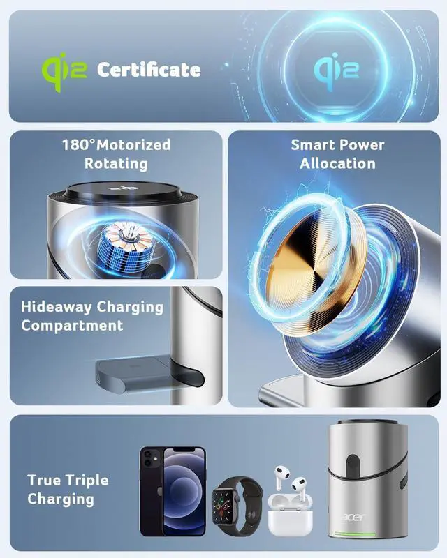 [Premium Matte-Tech Construction] This wireless charging station crafted for technology enthusiasts, our scratch-resistant matte cylinder resists fingerprints while blending with modern decor. It's the perfect phone charger choice.