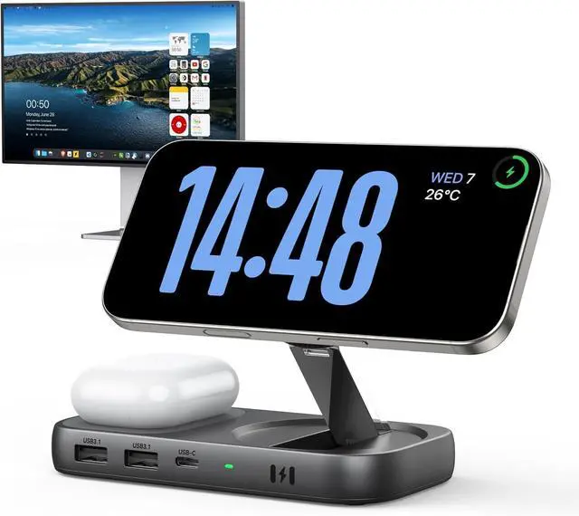 65W PD + 15W Qi2 Fast ChargingPower your MacBook Pro at 65W via USB-C PD, charge your iPhone with 15W Qi2 wireless charging (faster than standard 7.5W ), and top up your wireless earbuds at 5Wall at the same time