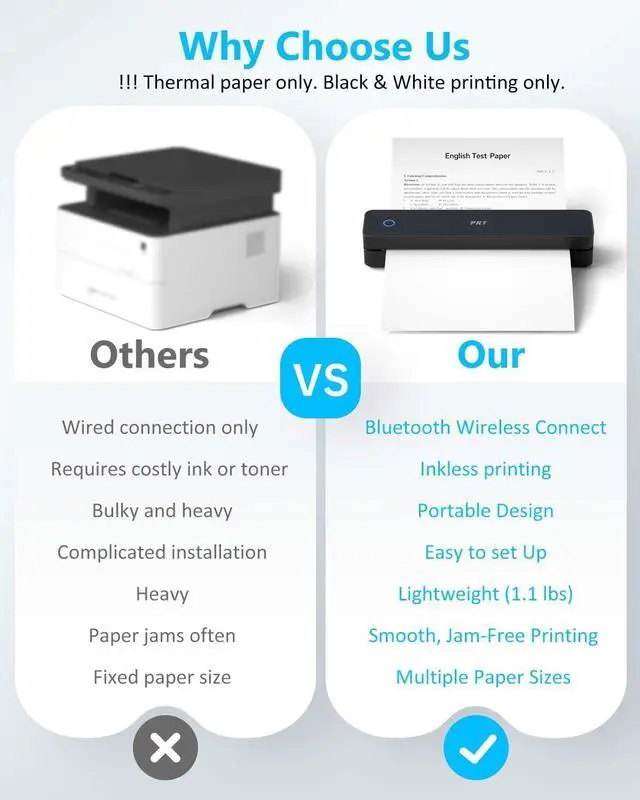 Rechargeable & Multi-Device CompatibleDont let size fool you, our travel printer built-in 2000mAh rechargeable battery prints up to 240 sheets per charge. Take it on the go with no outlet required. Small printer great for on-the-road printing, business travel, camping, or emergency usea truly wireless printer.