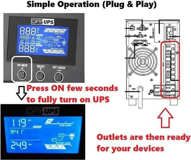 Press the ON Button for FEW SECONDS to fully power on the UPS, the back outlets are then ready for your devices. Simple Plug & Play operation. Runtime chart in pictures. (Due to item value *** SIGNATURE MAYBE REQUIRE FOR DELIVERY ***)