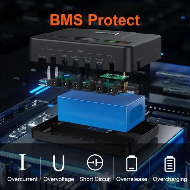 Provide short-circuit, over-current and over-charging/discharging protection.