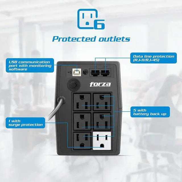 An Essential Security Device: Whether you work from home or own a small business, this Forza surge protector with smart battery backup safeguards your work and equipment; manage this device from a computer through the USB port or the LCD touchscreen.
