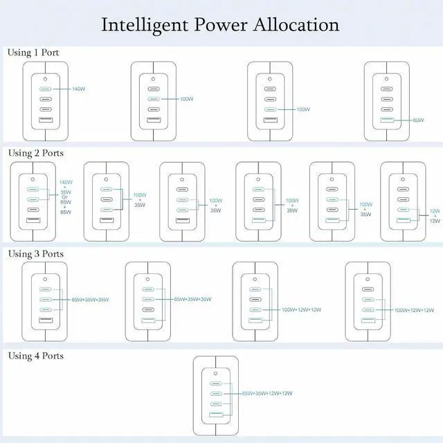 140W GaN Charger High power enables rapid charging of devices; Designed with multiple interfaces, it allows charging of multiple devices simultaneously; It is compatible with a variety of fast charging protocols, offering a wide range of applicability;