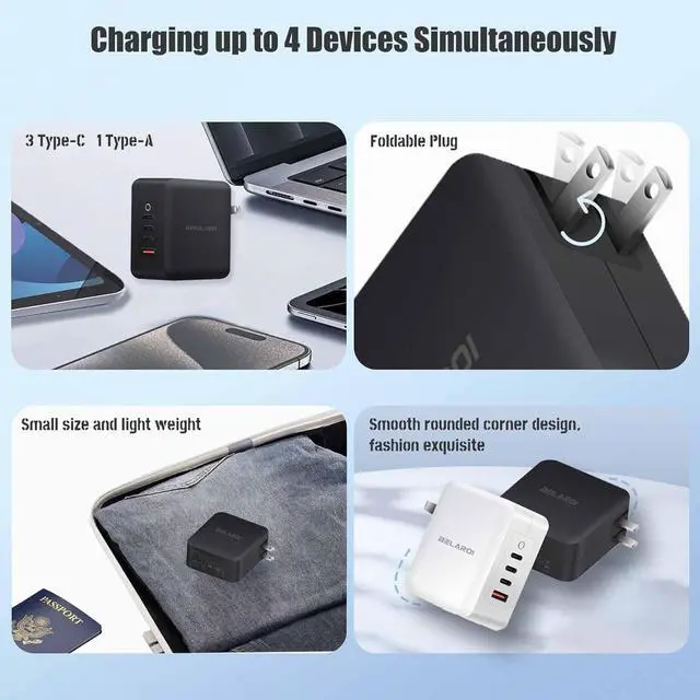 Safe and reliable: Our USB C charger blocks are made of fireproof PC materials. Paired with the bridge type gallium dinitride, it is small in size, light in weight, and has good thermal conductivity efficiency, and it enhances safety features, including protection against short circuits, overtemperature, overcurrent, overvoltage and overpower situations.