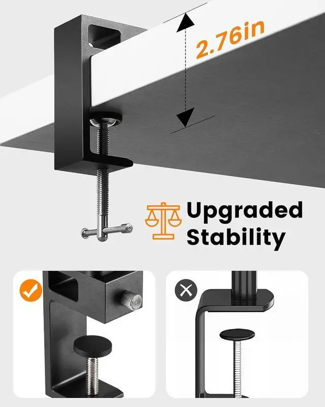 Space-Saving Clamp Design: Features an innovative C Clamp structure and non-slip silicone base to prevent scratches. This video conference lighting for computer supports a max clamp width of 2.7", keeping your desk tidy while maximizing space
