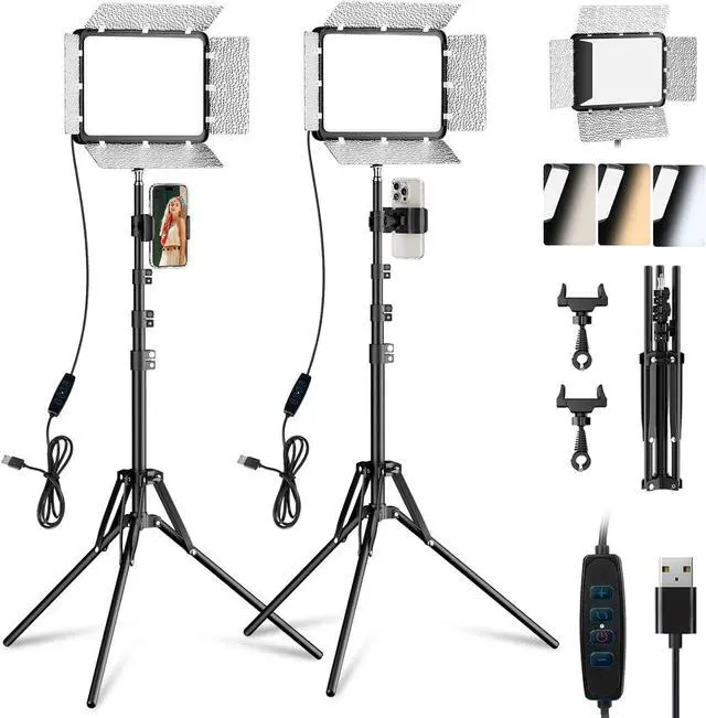 Complete Kit & Support: Includes 2 LED panel light, 2 tripods, 2