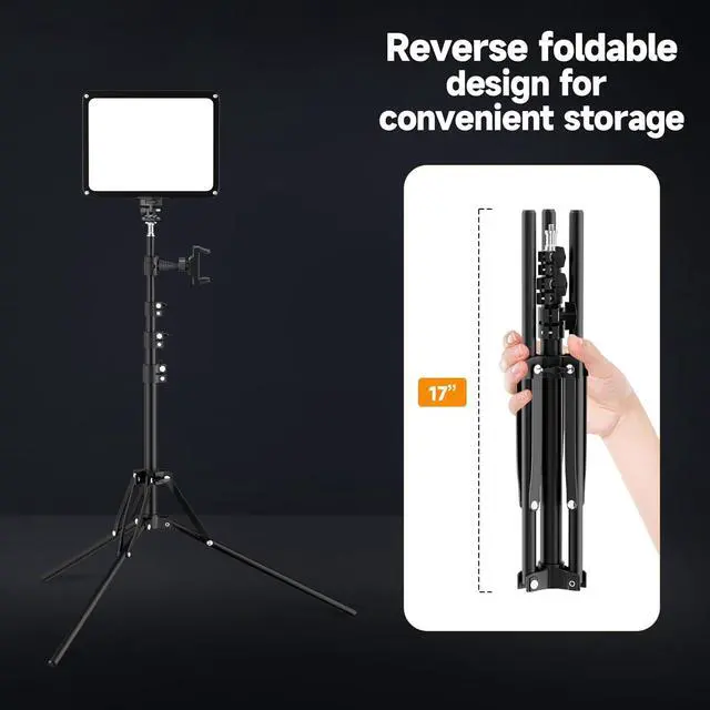Versatile Tripod Stand: Mount lights securely on the 60" tripod with 180° tilt and quick-release 1/4" screw. Its adjustable height (29"-60"), powder-coated stand, and 3 knobs ensure stable positioning for overhead shots, low-angle filming, or desk setups. Folds compactly for travelessential for YouTube, podcast, tattoo or live streaming
