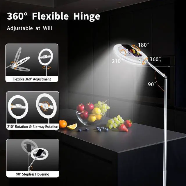 Multi-angle AdjustmentThis wireless retractable ring light stand adopts a new design, equipped with a 90° stepless suspension metal hinge and a mobile phone/camera holder for overhead shooting, as well as a 360° rotating hinge adjustment angle, which can help you find the right overhead shooting angle, giving you a different shooting experience, easily achieving all-round multi-angle shooting, ensuring that your mobile phone and ring light are in the perfect shooting position.