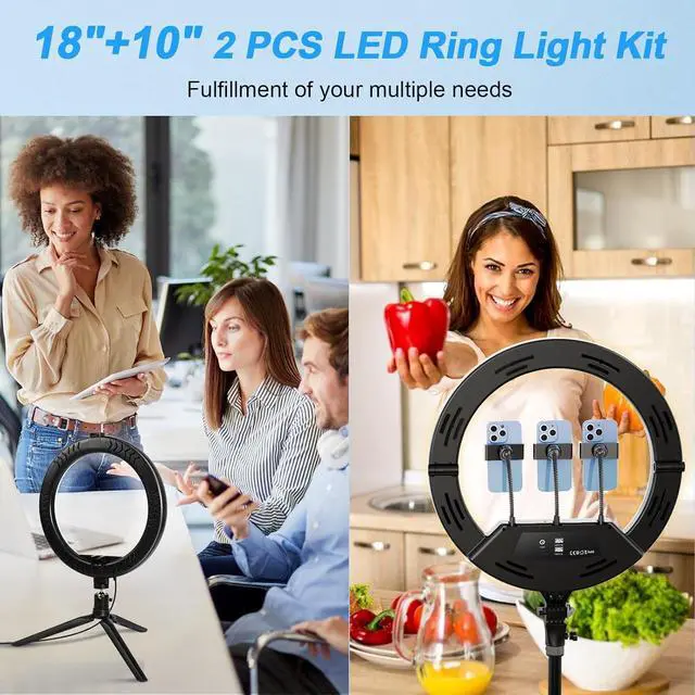 18 Ring Light with Tripod Stand and 10" Ring Light for TikTok, YouTube, Camera, Video, Live Stream.