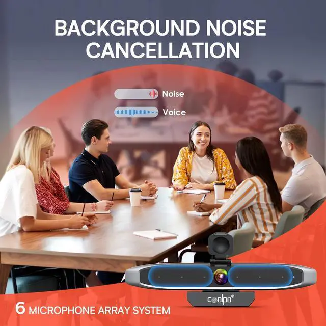 6-Microphone Array + 26ft Beamforming Pickup Range - With an advanced 6-microphone array, video conference camera beamforming picks the target voice and reduces the background noise, maintaining the voice clarity during meetings. The unique echo cancellation technology of this 4k webcam with microphone, which supports 26ft. long-range pickup, enables every word of your team to be caught.