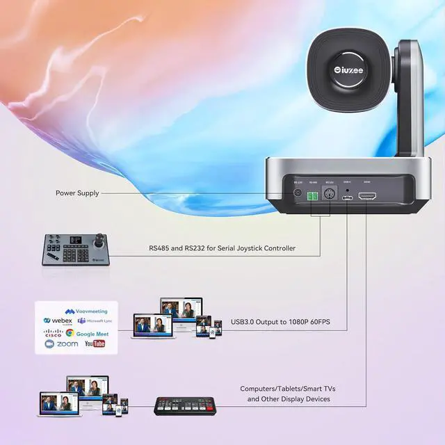 Plug-and-Play Setup: This streaming camera supports multiple output options, including USB 3.0 for 1080P 60FPS video, HDMI for use with computers, tablets, smart TVs, and other devices, as well as RS485 and RS232 for joystick controllers. Whether you need a PTZ HDMI camera for professional setups or a live streaming camera for high-quality broadcasts, its plug-and-play functionality ensures a hassle-free experiencejust connect to your device and start streaming or conferencing immediately.