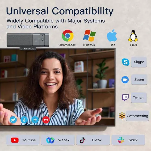 Ultra Portable Design - The 16 all-in-one video conferencing camera is compact ( 5.5 × 2.8 × 2.3 in, 5.9 oz) fits in any bag. This USB webcam comes with a universal clip that fits laptops, desktops, PCs, LCD monitors, and even curved screens. You can stand it vertically on a conference table or use a webcam tripod clip (sold separately) to adjust angles for any meeting setup