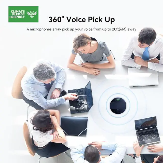 The Conference speakerphone could be connected via Wireless or Bluetooth or USB-C or headphone cable to your laptop or phone. The microphone is compatible with operating systems - Windows, MacOS, Linux and Android. With a built-in 8000mAh lithium battery, you can start efficient meetings anytime, anywhere. It is easy to get the meeting started by touching the screen.