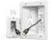 Top Dual Outlet Power Box measures 8 in × 6.3 in: Please confirm available wall space before installation. On insulated exterior walls, extra tools (like fish tape or wire snake) may be needed to guide cables through insulation.