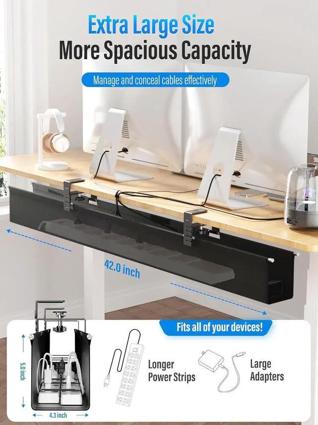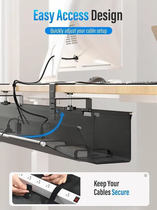 Unique premium fabric material Upgrade Your Workspace With Our HeavyOur flame-retardant, dust-resistant under-desk cable tray offers heavy-duty durability, supporting up to 30 lbs. Perfect for hiding power strips, adapters, and cords, it transforms clutter into a cleaner, safer workspace!
