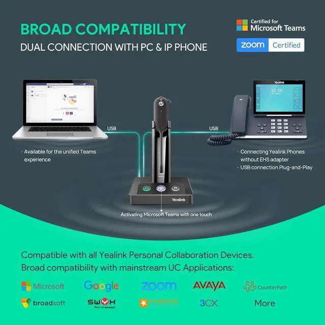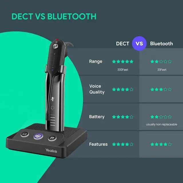 different wearing styles: Lightweight ergonomic headband, adjustable headband, and soft faux leather ear pads; Up to 8 hours of talk time for a full day's work without recharging.