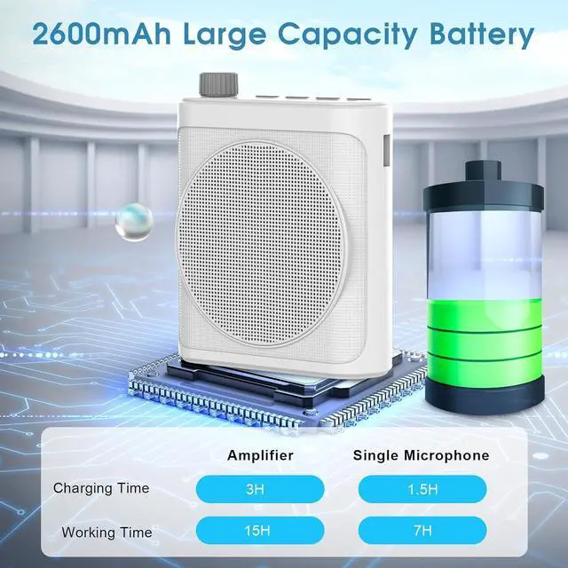 Long-Lasting Power for Extended Sessions: Engineered for all-day use. Each wireless lavalier microphone provides up to 7 hours of operation on a full charge, while the main voice amplifier unit lasts up to 15 hours - perfect for long teaching days, presentations, or tour guide duties. Full charging takes only 3-4 hours