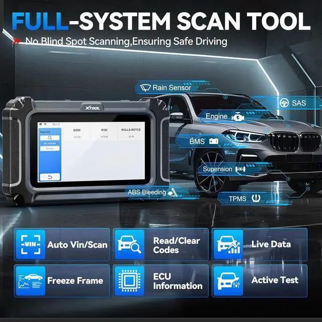 Full System Diagnosis for BMW/MiNi/RR IP500 obd2 scanner diagnostic tool scans 30+ control units where generic OBD2 scan tools fail. Our for BMW/MINI/RR-specific scanner dives deep into critical modules like DSC (Dynamic Stability Control), FRM (Footwell Module), CAS (Car Access System), and Battery Management reading fault codes, live data, and freeze frames directly from the source. Diagnose elusive electrical gremlins (e. g., DSC 5E20 pressure sensor faults), battery drain culprits (JBE module wake-up errors), or intermittent airbag warnings (SZL steering column codes) that generic tools miss. Perform active tests, and get repair guidance tailored to F/G-chassis logic.