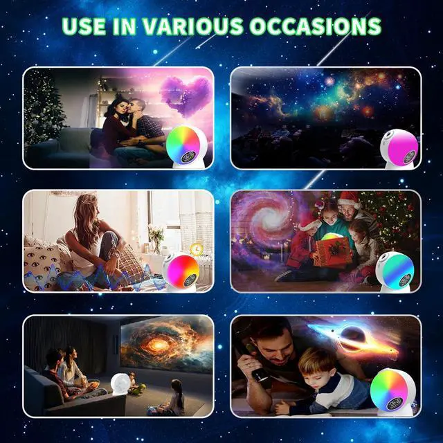 Your Best Gifts The galaxy light projector is suitable for birthday, party, Wedding, Room decor, children's day, Christmas, Anniversary gifts, It creates a wonderful and starry atmosphere help children stimulate their curiosity, imagination, creativity. Also Perfects for indoor decoration, romantic mood light, night lamp, and bedside lamp.