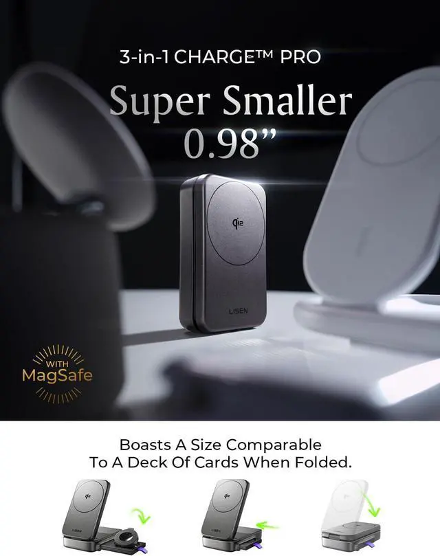 Compact and Portable Design: Our foldable 3 in 1 nightstand charging station is designed to be travel-ready, fitting easily into your palm or pocket. Whether you're at home, in the office, traveling, or in a meeting room, this sleek and stylish charger keeps your space organized and clutter-free. Its slim and lightweight design makes it the perfect companion for your busy lifestyle.