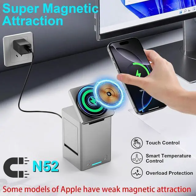 [N52 Powerful Magnetic Wireless Charging] The 3 in 1 magnetic wireless charger station has newly upgraded magnetic suction, can firmly align with the phone, protecting your phone from falling off accidentally. Bringing you a fast and stable magnet wireless charging experience. Put your iPhone onto the device horizontally or vertically to get it charged instantly. This wireless charger stand is recommended to wear a magnetic phone case or no case.