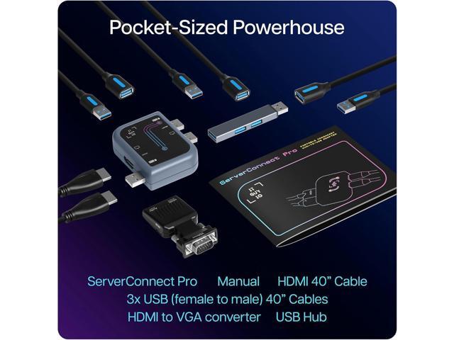ServerConnect Pro Portable Server Management Tool: USB Crash Cart Adapter 1920 x 1200 Portable Laptop USB 2.0 to KVM Console - Datacenter Server Monitor Mouse and Keyboard to USB