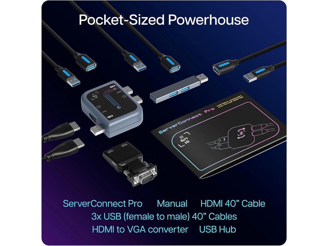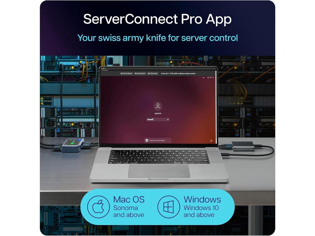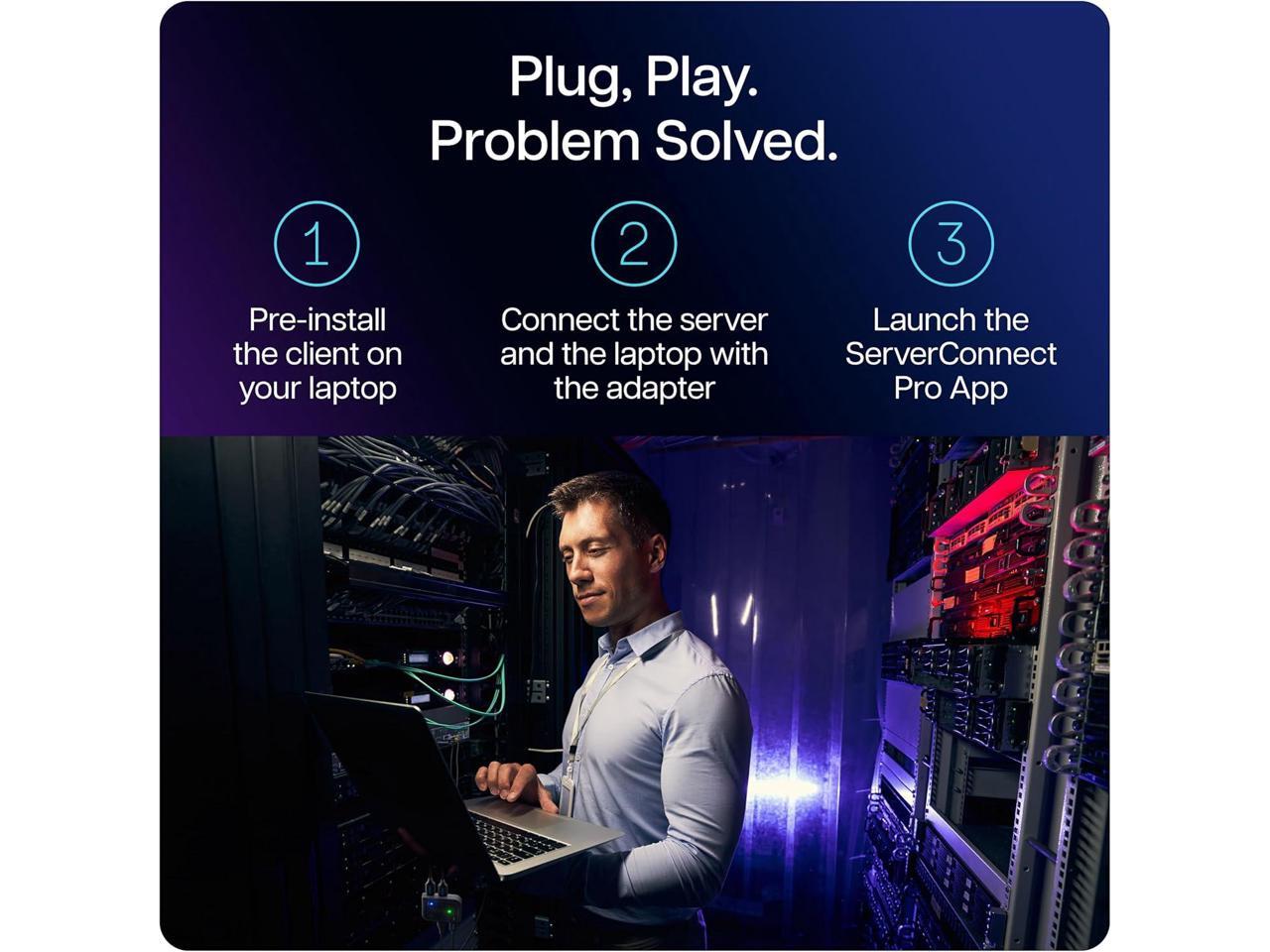 PORTABLE SERVER MANAGEMENT. Transform any laptop into a comprehensive server management tool with ServerConnect Pro: ideal for system admins who need to troubleshoot servers, ATMs, or PCs on the go without the bulk of traditional setups