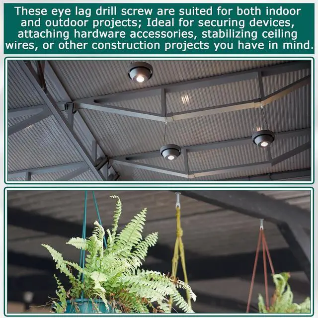 Broad Applications: these eye lag drill screw are suited for both indoor and outdoor projects; Ideal for securing devices, attaching hardware accessories, stabilizing ceiling wires, or other construction projects you have in mind