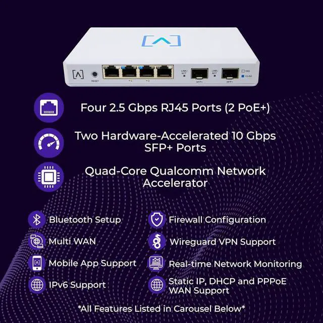 Real-Time Network Monitoring: Includes advanced tools like Deep Packet Inspection (DPI), intrusion detection, and real-time statistics reporting. Native VPN Support: Now Supports WireGuard & IPSEC!