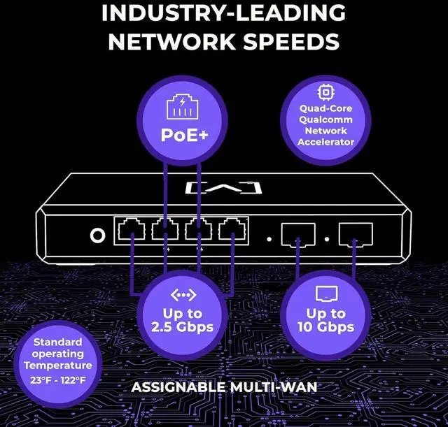 Quad-Core Qualcomm Network Accelerator: Ensures high-performance routing and network management.
