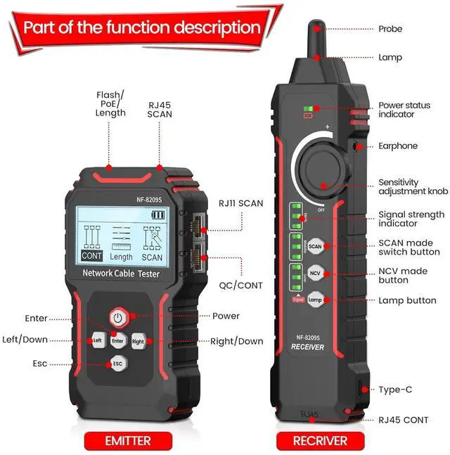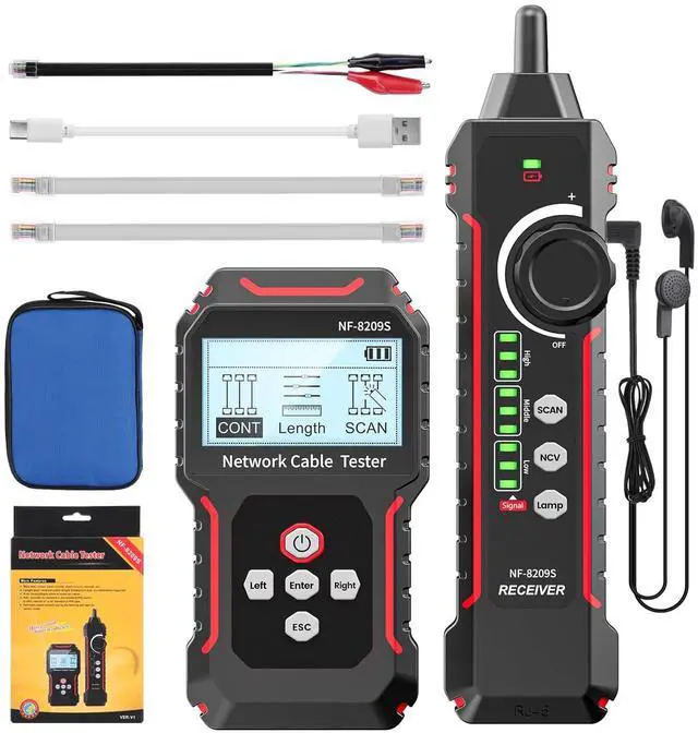 [Cable Test & Length Measurement] Connect the network cable to be tested to the transmitter, and the wire tracker will automatically detect the status of short circuit, crossover and open circuit of the network cable, and display the status on the LCD screen to facilitate accurate positioning of the line and port. The network cable tester measures cable length and identifies the distance of open circuits and short circuits. Dynamically calibrates cable length and make length measurement as accurate as 99%.
