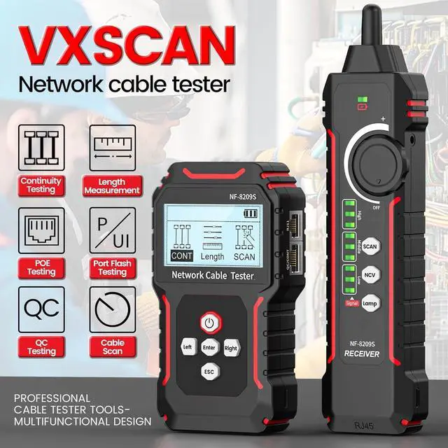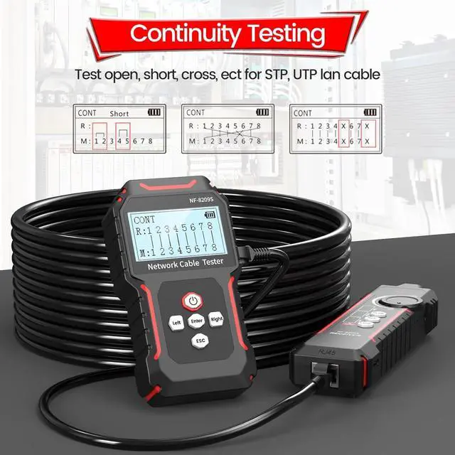 [Cable Continuity Testing & NCV] Test physical status for STP, UTP lan cable. Detect AC voltage presence (50V-1000V)