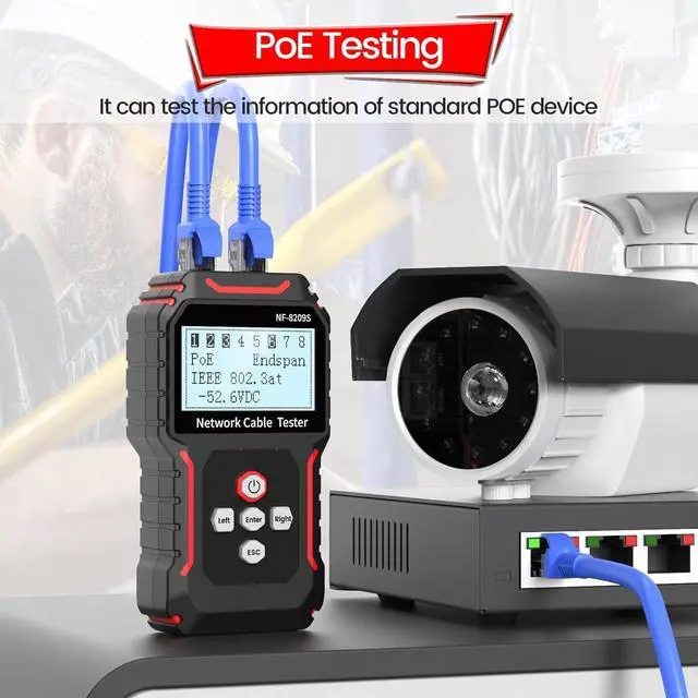 [Port Flashing & POE Test] The Poe Ethernet Cable Tester is designed to test standard PoE equipment, including af/at standards, power supply voltage, power supply polarity and mode, and can withstand up to 60V DC. Hub blink for locating network port by the flashing port light on Hub / Switch. Available to 10M/100M/1000M Hub/ switch