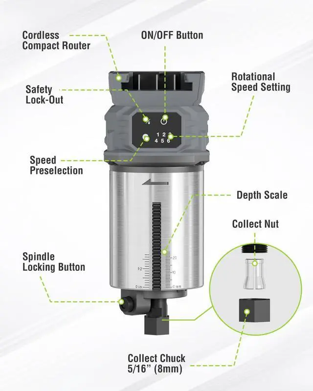 Unrestricted Mobility: Powered by a 20V lithium-ion battery, the 20V cordless compact router tool lets you work anywheregarage, jobsite, or remote benchwithout the hassle of cords. Enjoy easy handling, quick setup, and a cleaner workspace