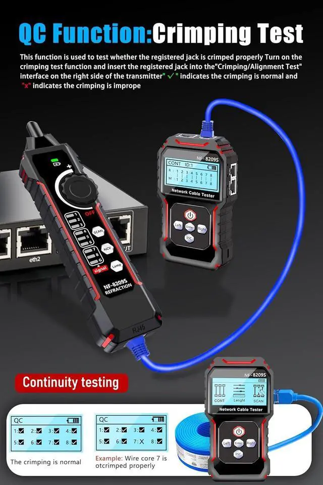 POE Test: Comes with a rugged, drop-proof case and a large, easy-to-read LCD screen. Also determines which pins are being powered and detects the voltage, determines the PSE type (according to the /af standard) and detects the presence of AC voltage (50V-1000V). It can be used for 10M/100M/1000M hubs/switches and is ideal for on-site network engineers for network installation and maintenance and on-site network troubleshooting as well as for home DIY, holiday gifts