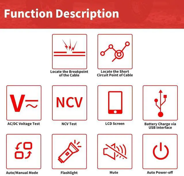 Wide Application: This underground cable locator is widely used in communication cable construction, power cable construction, and maintenance of communication cables, power supply lines, and electric heating lines. Most importantly, if you are testing multi-core cables, all but the target cable must be grounded.